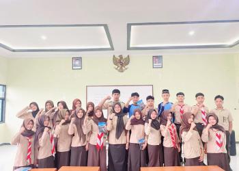 Foto bersama usai pelaksanaan kegiatan sosialisasi Saka Adhyasta Pemilu di SMK Wiratama 45.2 Wonosobo.