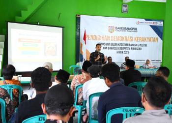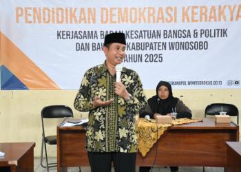 Kepala Bakesbangpol Kabupaten Wonosobo, Agus Kristijono membuka Pendidikan Demokrasi Kerakyatan putaran ketiga di Kaliwiro, 7/10/2025