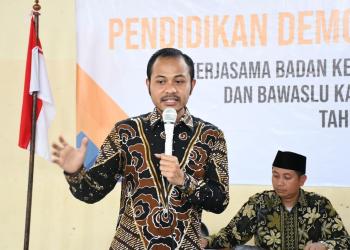 Kordiv SDMO Bawaslu Wonosobo, Nasir Salasa memberikan materi pada Pendidikan Demokrasi Kerakyatan di Sapuran, 25 September 2025