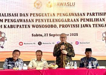 Ketua Bawaslu Wonosobo membuka Sosialisasi Pengawasan Partisipatif bersama Anggota Komisi 2 DPR RI, di Dewani View Wonosobo, 27 September 2025