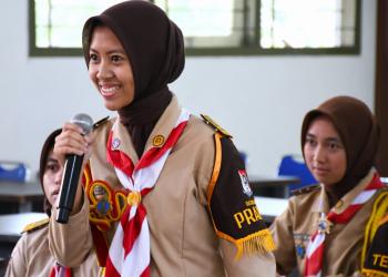 Pradanawati SMKN 1 Wonosobo menyampaikan pertanyaan saat Sosialisi Saka Adhyasta, Jumat, 10/10/2025